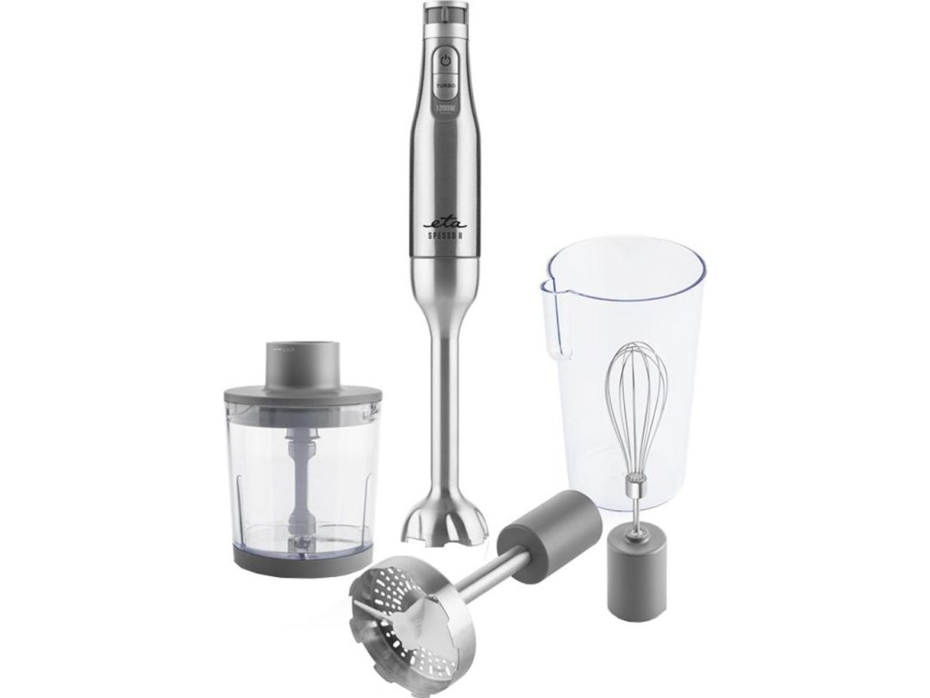 Funkcie, príslušenstvo: mixovacia nádoba, mixovanie, nadstavec na kašu/pyré, sekací nadstavec (chopper), šľahanie