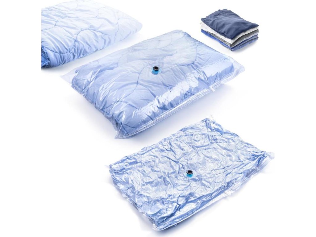 Úložný vak slúži ako ideálna ochrana odevov alebo textílie proti prachu, moliam, vlhkosti a zápachu, materiál PA + PE, rozmer 100 x 70 cm. Úložný vak slúži ako ideálna ochrana odevov alebo textílie proti prachu, moľom, vlhkosti alebo zápachu. Vak je antibakteriálny a obsahuje vzduchotesné zatváranie a odsávací ventil pre všetky typy bežných vysávačov. Vak má hrubú fóliu zaručujúcu dlhú životnosť a umožňuje opakované používanie. Pri skladovaní ušetríte až 80 % miesta. Spätný ventil znemožňuje únik vzduchu smerom von. Odsávacia pumpa je vyrobená z plastu. Materiál: PA + PE.