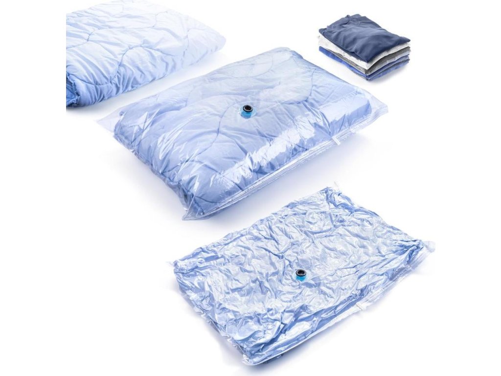 Úložný vak slúži ako ideálna ochrana odevov alebo textílie proti prachu, moliam, vlhkosti a zápachu, materiál PA + PE, rozmer 60 x 70 cm. Úložný vak slúži ako ideálna ochrana odevov alebo textílie proti prachu, moľom, vlhkosti alebo zápachu. Vak je antibakteriálny a obsahuje vzduchotesné zatváranie a odsávací ventil pre všetky typy bežných vysávačov. Vak má hrubú fóliu zaručujúcu dlhú životnosť a umožňuje opakované používanie. Pri skladovaní ušetríte až 80 % miesta. Spätný ventil znemožňuje únik vzduchu smerom von. Odsávacia pumpa je vyrobená z plastu. Materiál: PA + PE.