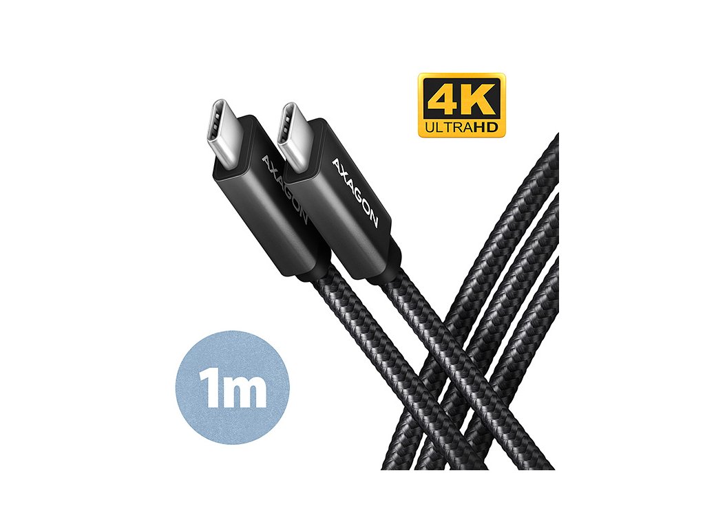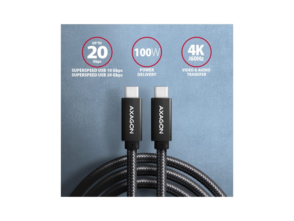 AXAGON BUCM32-CM10AB, SPEED+ kabel USB-C <-> USB-C, 1m, USB 20Gbps, PD 100W 5A, 4k HD, ALU, oplet, černý