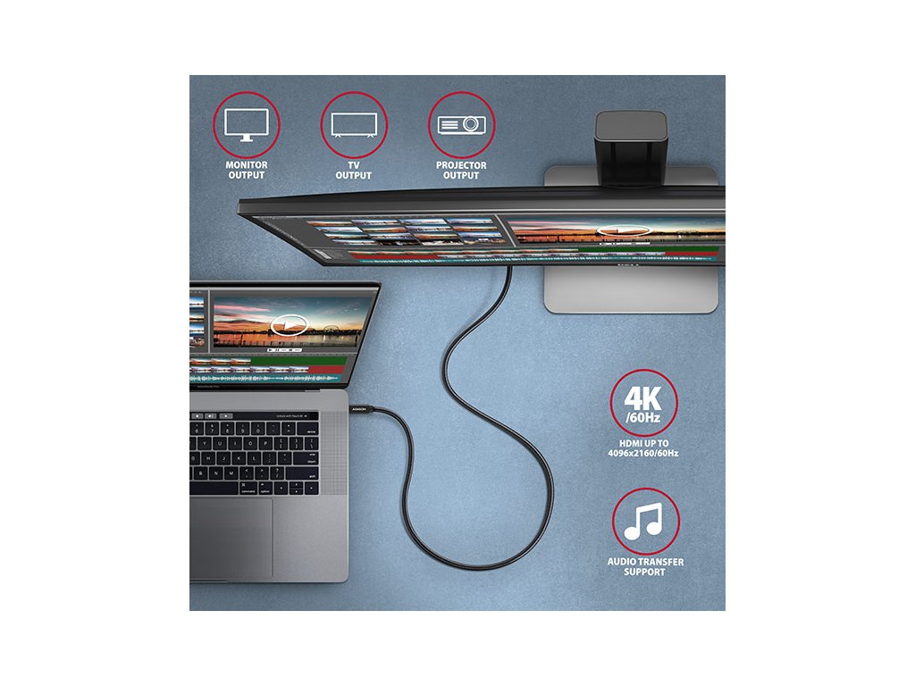 • Podpora přenosu zvuku – závisí na zdrojovém a koncovém zařízení, tj. notebooku/telefonu a TV/monitoru/AV receiveru.