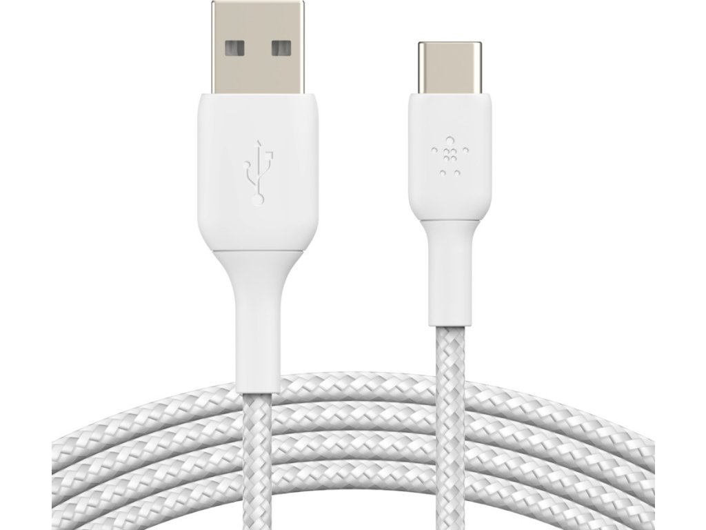 BELKIN kabel oplétaný USB-C - USB-A, 1m, bílý