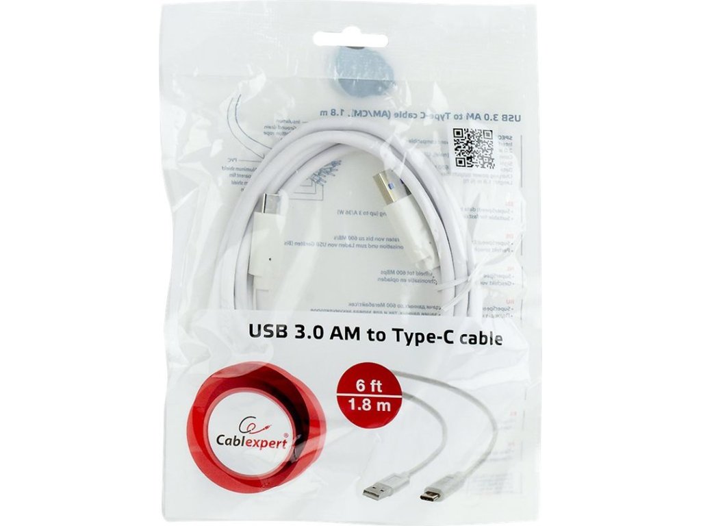 GEMBIRD Kabel USB 3.0 AM na Type-C kabel (AM/CM), 1,8m, bílý