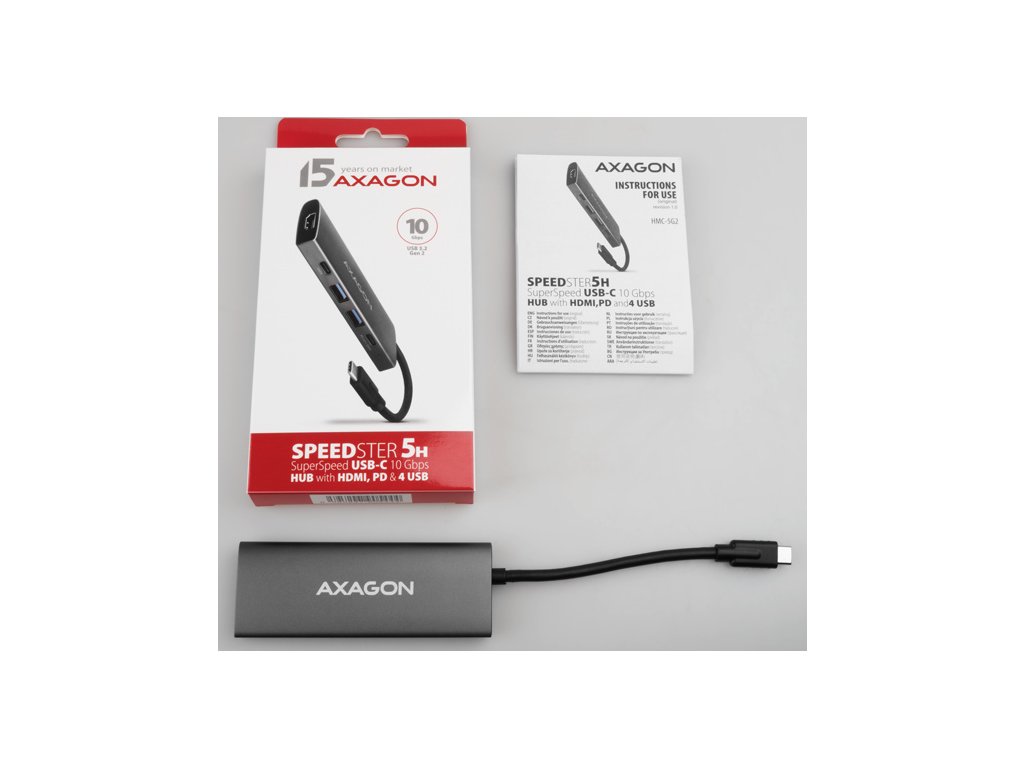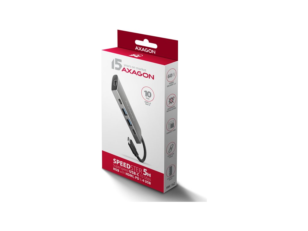 Multiportový USB-C 10Gbps AXAGON HMC-5G21 SPEEDSTER 5in1 hub rozšíří váš notebook, počítač nebo telefon o pětici portů. Připojení k zařízení probíhá prostřednictvím 13 cm USB-C kabelu. Okamžitě tak máte k dispozici připojení pro 4K monitor a další USB periferie. Zároveň získáte možnost napájení notebooku pomocí technologie Power Delivery. Kompatibilita s Thunderbolt 3/4/5 vám také poskytne jednoduchou a skladnou dokovací stanici k notebooku jako je například Apple MacBook Air nebo Pro.