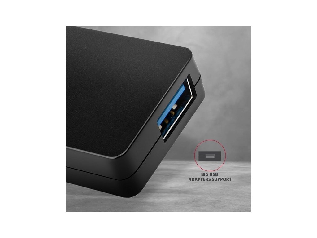 • 4 downstream SuperSpeed USB porty typu A female s dostatečným prostorem kolem konektorů.