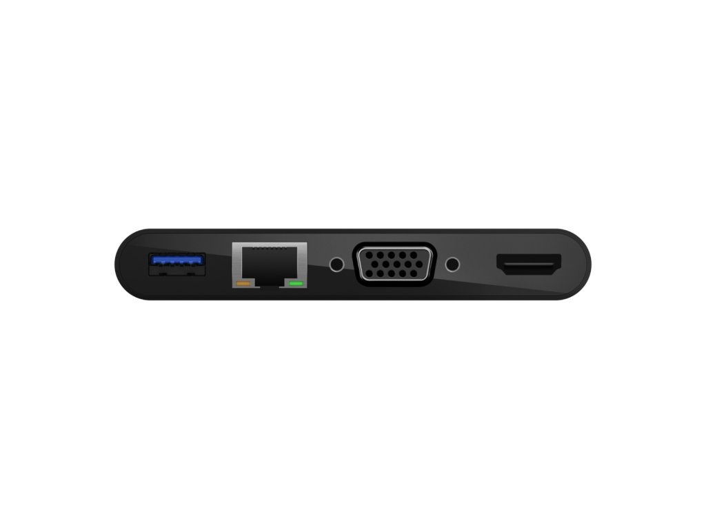 Sledujte a nabíjejte se s multimediálním adaptérem, který umožňuje průchozí napájení až 100 W. Pětiportový adaptér podporuje gigabitový Ethernet, USB-A 3.0, VGA, 4K HDMI a přenos dat přes USB-C, takže je ideálním nástrojem na schůzích, v posluchárnách, učebnách nebo na cestách. Tato jednoduchá technologie plug-and-play je kompatibilní s notebooky Mac i Windows a zařízeními s USB-C.