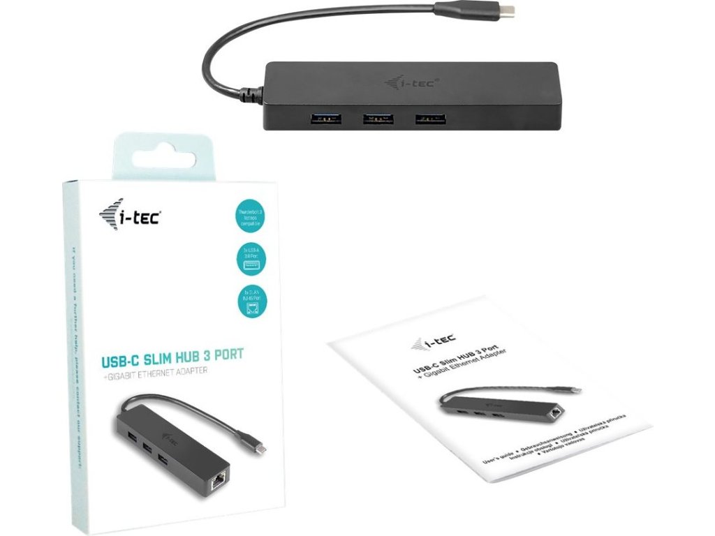 • i-tec USB-C Slim HUB 3 Port + Gigabit Ethernet Adapter s integrovaným kabelem (16 cm)