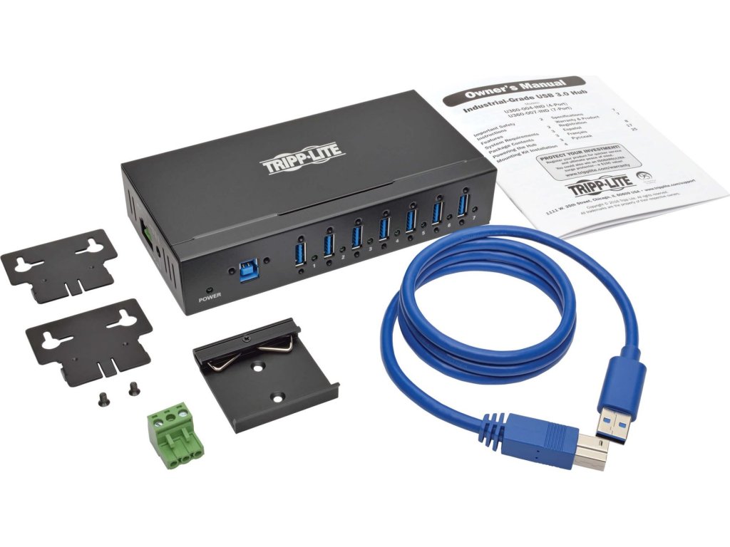 Odolný průmyslový rozbočovač přidává do počítače 7 portů USB 3.0 pro připojení průmyslových tiskáren, senzorů a dalších zařízení USB.