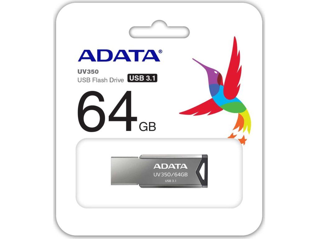 ADATA Flash Disk 64GB UV350, USB 3.2 Dash Drive, tmavě stříbrná textura kov