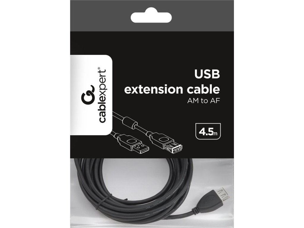 GEMBIRD Kabel USB 2.0 A-A prodlužovací 4,5m (černý, HQ s ferritovým jádrem)