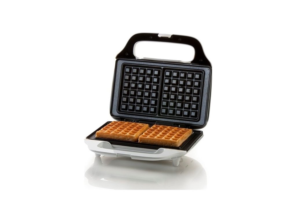 extra velké pečící desky pro přípravu dvou extra velkých vaflí 250 x 150 mm, nadrozměrné vafle o velikosti 6x4 čtverečku, kontrolky zapnutí přístroje a ukazatel nahřátí, pečící desky s nepřilnavým povrchem, automatický zámek víka, příkon 900 W