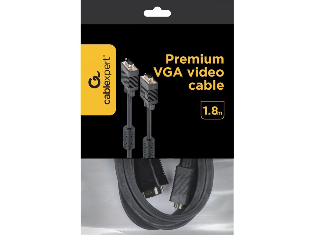 GEMBIRD Kábel VGA 1,8m, černý (HD15M/M, dvojité tienenie, feritové jadro)