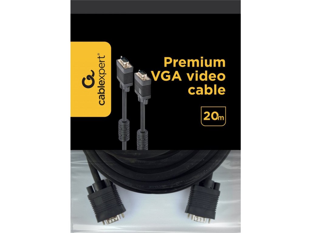 GEMBIRD Kábel VGA 20m, čierny (HD15M/M, dvojité tienenie, feritové jadro)