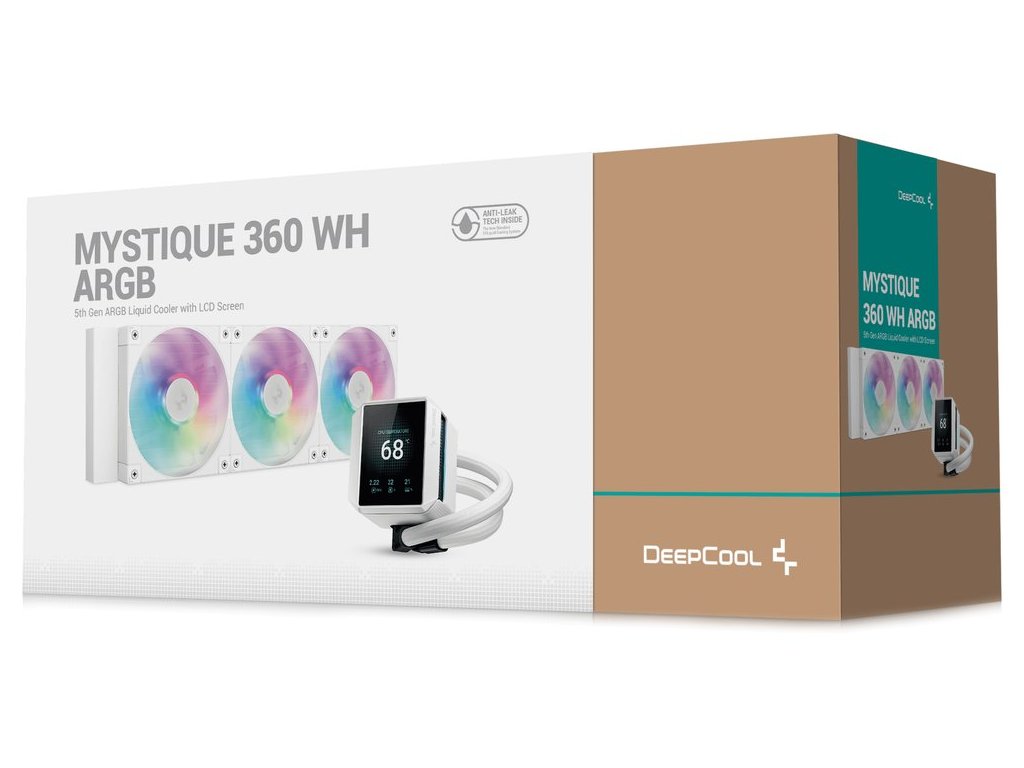LCD displej vám zprostředkuje nejenom praktické informace o CPU, jako je například teplota nebo frekvence, ale také další personalizovaný obsah. Chladič DEEPCOOL MYSTIQUE 360 ARGB je vybaven čerpadlem DeepCool 5. generace, které je navrženo speciálně pro moderní a vysokofrekvenční procesory náročné na energii. Chladicí deska s přepracovanou konstrukcí zlepšuje přenos tepla a průtok kanály, takže chlazení je efektivnější. Patentová technologie Anti-Leak zabraňuje nechtěnému úniku kapaliny nebo tlaku a prodlužuje celkovou životnost chladiče.