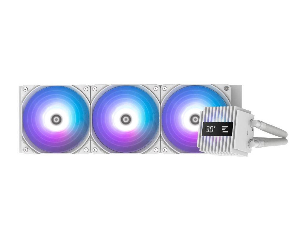 Vodní chladič určený pro chlazení široké škály procesorů. Vyznačuje se vysokou kvalitou, výkonem a spolehlivostí. Disponuje třemi 120 mm velkými ventilátory s ARGB podsvícením. Odolné opletené hadice zaručují díky dostatečně širokému průměru plynulý průtok chladicí kapaliny. Chladič je dodáván se speciální teplovodivou pastou ZM-STC10 pro maximální odvod generovaného tepla.
