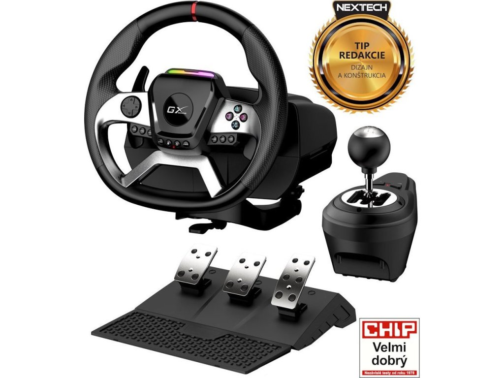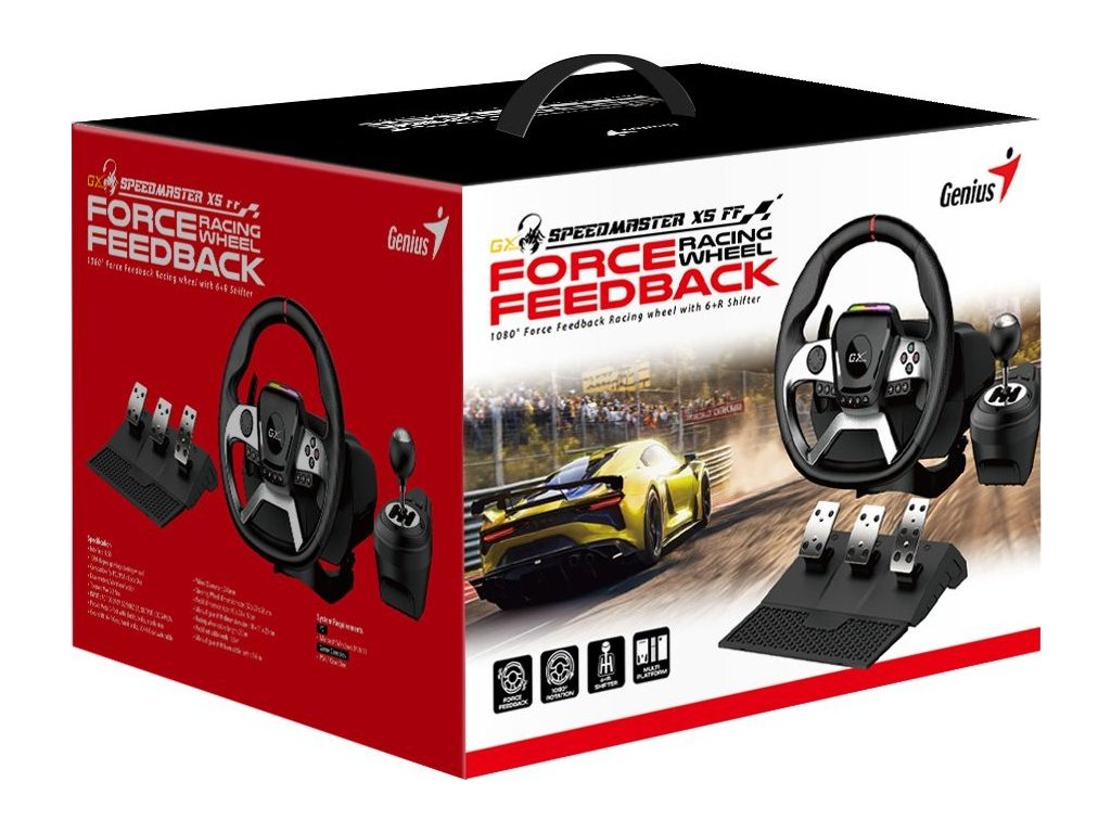 GENIUS Volant s pedály GX Gaming SpeedMaster X5 FF, Řadící páka, Drátový USB-C, vibrační, PC, PS4, Xbox One