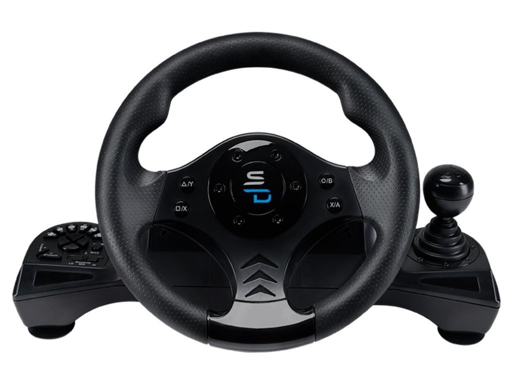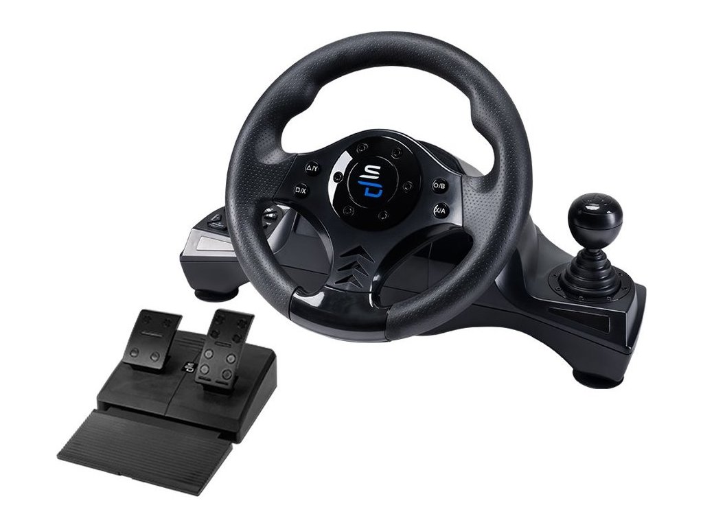 Set SUPERDRIVE GS750 obsahuje vše pro komplexní řízení virtuálního vozu. Tato sada obsahuje volant, pedály a řadicí páku, abyste dosáhli maximálně autentického zážitku ze řízení vozu. Volant disponuje 270° úhly otáčení, díky čemuž se přizpůsobí každému jízdnímu stylu. Nezáleží na tom, jestli jedete střídmě a na jistotu, nebo se snažíte prchnout před policií. Nastavitelné úrovně citlivosti vám umožní hrát v arkádovém stylu i v plné simulaci. Základna je na spodní straně vybavena přísavkami, díky čemuž volant s řadicí pákou pevně drží na svém místě.