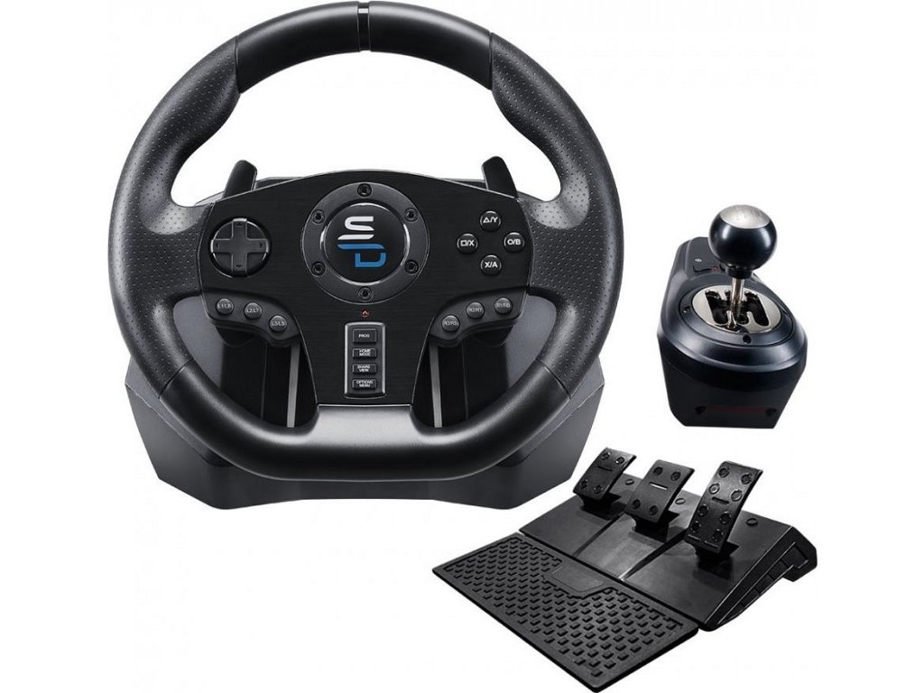 Herní set SUPERDRIVE GS850-X pro kompletní ovládání virtuálního sporťáku, formule nebo třeba motokáry. Sada obsahuje volant, řadicí páku i pedály, takže svoji garáž budete mít pod dokonalou kontrolou a vychutnáte si mimořádně realistické zážitky v každé jízdě. Manuální řadicí páka nabízí 5 rychlostí a zpátečku, protiskluzové pedály vám umožní okamžitou akceleraci nebo prudkou brzdu. Volant disponuje 270° úhly otáčení, díky čemuž se přizpůsobí každému jízdnímu stylu. Nezáleží na tom, jestli jedete střídmě a na jistotu, nebo se snažíte prchnout před policií.