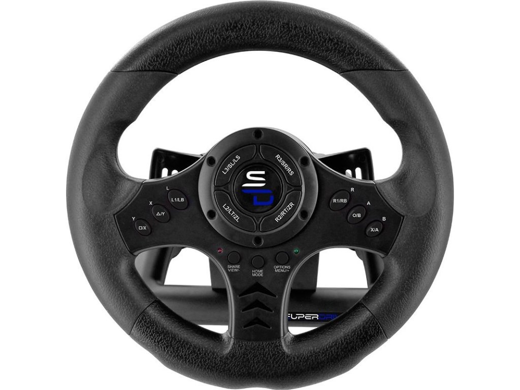 SUPERDRIVE SV450 představuje sadu volantu a pedálů pro komplexní ovládání závodních her. Vžijte se do role opravdového jezdce, který ovládá svůj vůz, sviští po trati, řeže zatáčky a řítí se plnou rychlostí do cíle. Tento set je vhodný pro všechny nadšence do automobilových her. Užijte si komfort při uchopení volantu a pusťte se do bojů o první místo. Díky 180° úhlu otáčení se přizpůsobí vašemu hernímu stylu, ať už jedete na jistotu, nebo preferujete zvýšenou míru rizika. S nastavitelnou citlivostí si užijete závodní arkády i simulace. Čistý design volantu je elegantní na pohled a příjemný na úchop, současně nabízí všechny nejdůležitější funkce a tlačítka pro plnohodnotné ovládání vašeho vozu.