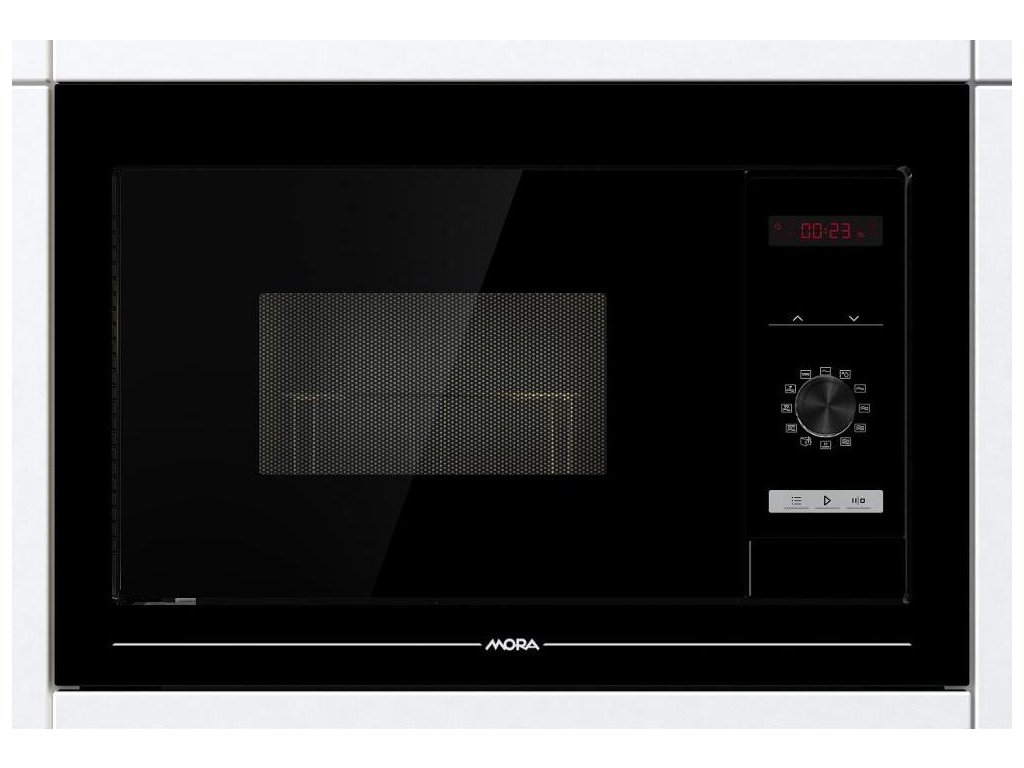 Vstavaná mikrovlnná rúra, čierne sko, možnosť kombinovaného ohrevu (mikrovlnný ohrev + gril), LED displej s možnosťou vypnutia, elektronické ovládanie, nerezový interiér rúry, výkon 900 W, výkon grilu Quartz 1200 W, objem 25 l, AUTO menu - 12 prednastavených programov, automatické rozmrazovanie podľa času a hmotnosti, 5 výkonových stupňov, otočný tanier 315 mm, grilovací rošt, elektronický časovač, hodiny, detský zámok, ECO CLEAN funkcia na čistenie rúry, jednoduchá montáž – rámček už namontovaný na rúru, elektrické napätie: 230 V, menovitý príkon: 1 450 W