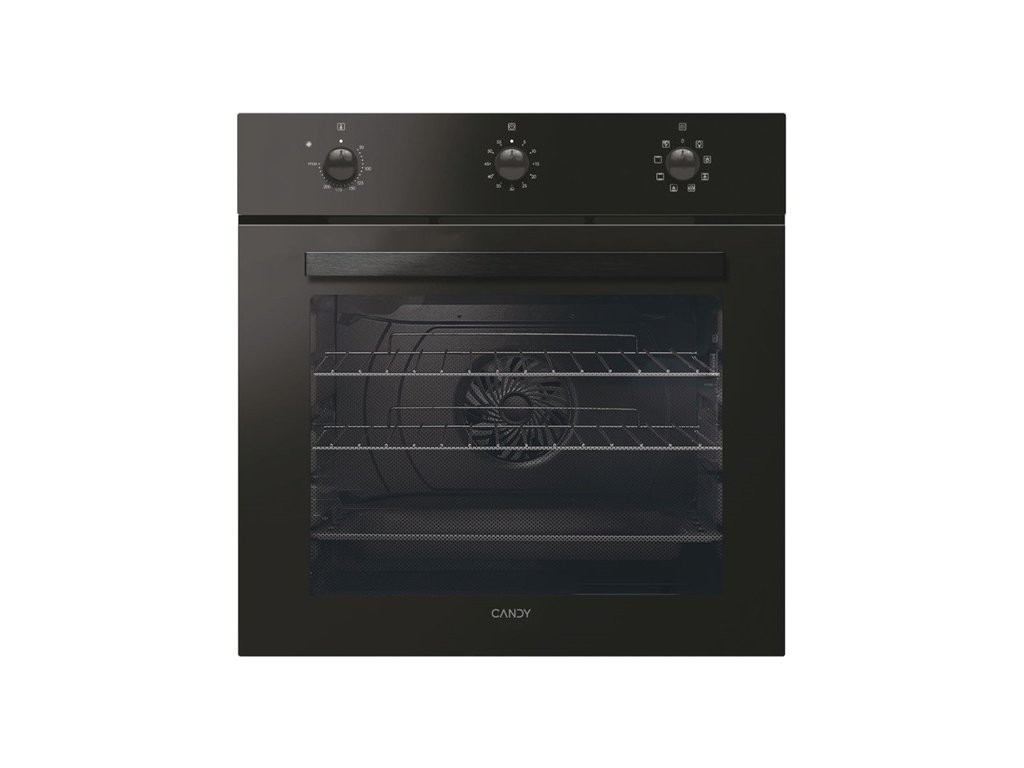 vestavná ventilovaná trouba; energetická třída A+; objem 65 l; 7 programů; program Pizza; 3 otočné knoflíky; 5 úrovní pečení; mechanická minutka; prolisy; osvětlení žárovkou; 2 bezpečnostní skla; 1x plech (35 mm); 1x rošt; 59,5 × 59,5 × 56,8 cm