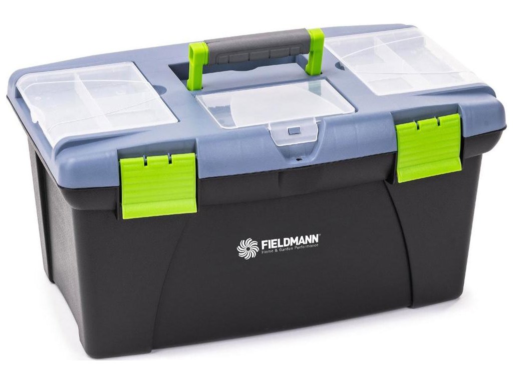 Horná časť boxu obsahuje priehľadný organizér, ktorý umožňuje rýchly prístup k drobnostiam, ako sú skrutky, bity alebo hmoždinky, vám pomôže udržať veci prehľadne upratané mm ponúka box Fieldmann dostatok priestoru pre všetky potrebné nástroje a zaistí ich bezpečné uskladnenie.