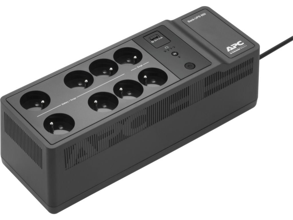 APC Back-UPS 650VA, 230V, 1USB charging port. Bateriový záložní zdroj s ochranou proti přepětí pro elektronická zařízení a počítače.