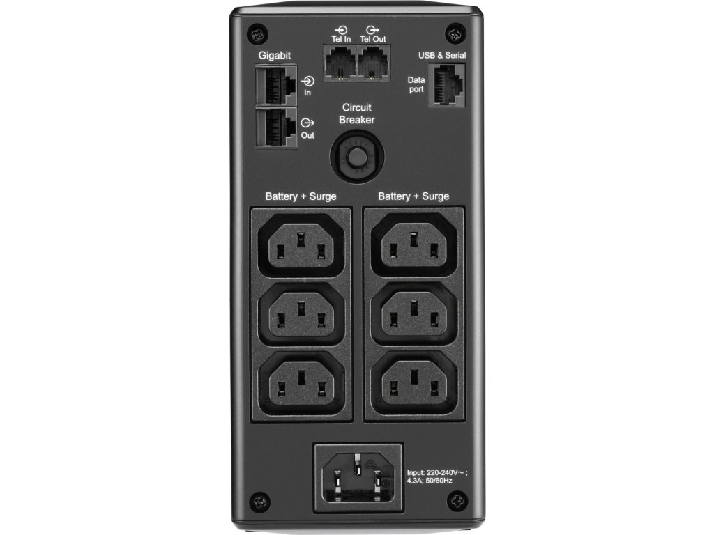 Výstupní přípojky: (6) IEC 320 C13 (Záložní provoz na baterie)