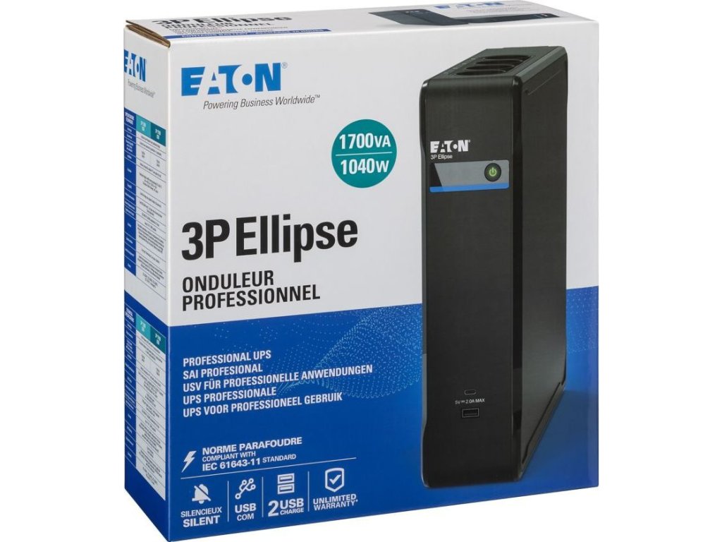Eaton 3P Ellipse UPS USB FR, 1700 VA, 1040 W, Vstup: C14, Výstupy: (4) Typ E, (4) Pouze přepěťová ochrana Typ E, USB nabíjení, Tower