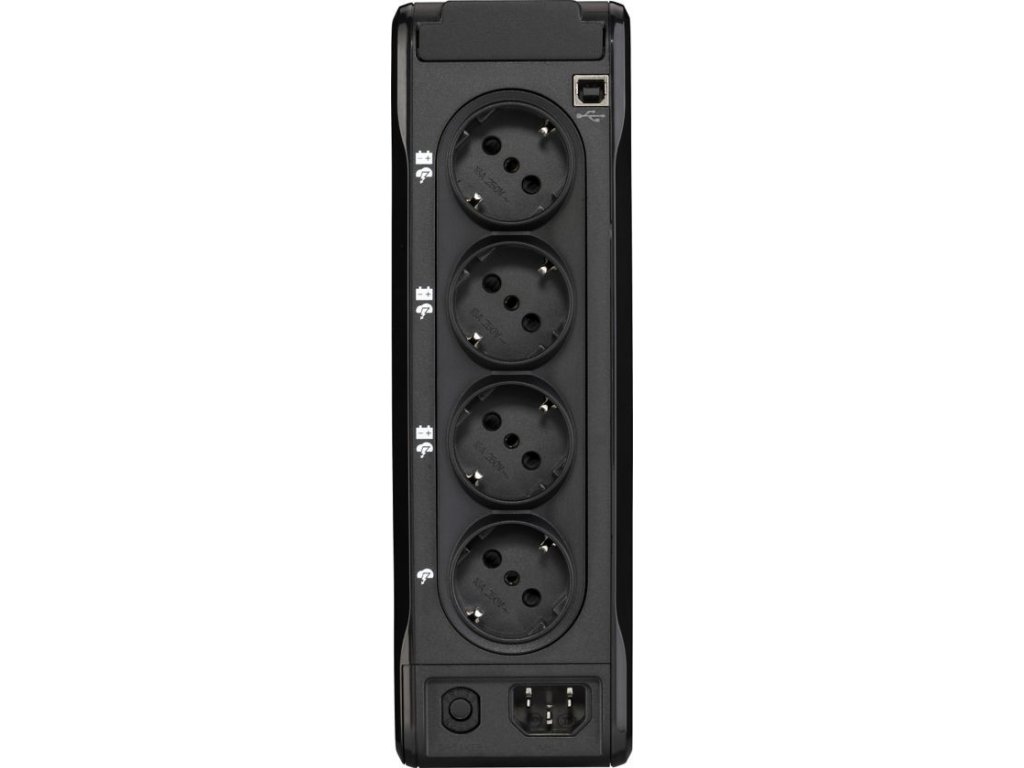 Výstupní přípojky: (3) Schuko, (1) Schuko surge only