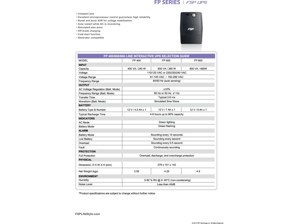Fortron UPS FSP FP 800, 800 VA, line interactive