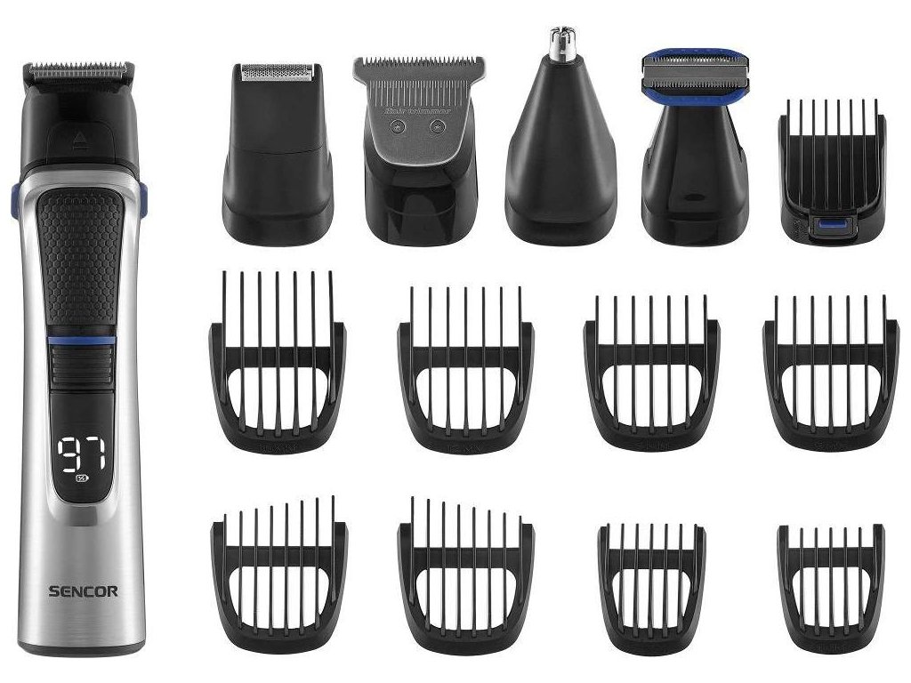 14 vymeniteľných doplnkov – Zastrihávač vlasov, Zastrihávač tela, Zastrihávač nosa, Mikroholiaci strojček, Hrebene, Ušný zastřihovač